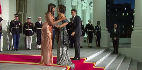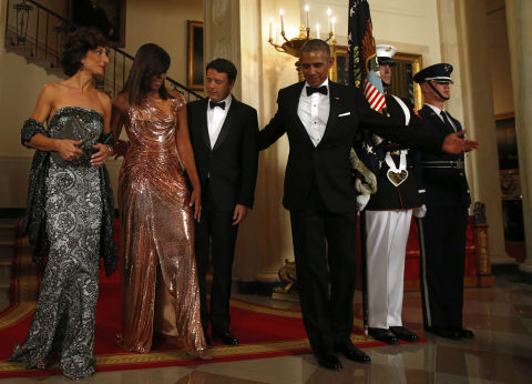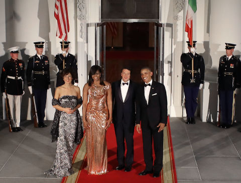 Choosing an Italian designer was a smart move for FLOTUS, who welcomed the the Prime Minister and First Lady of Italy to the White House with her husband this evening. She's traditionally worn designers from the same country as her guests—for example, she sported Canadian designer Jason Wu when Justin and Sophie Gregoire Trudeau came to visit.