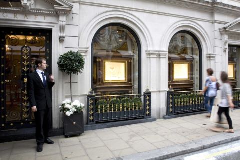 Two men altered their appearance using prosthetics and entered the Graff store on New Bond Street posing as customers (once again!). They took out handguns, forced the staff to open the display cases, and fled with 43 pieces of jewelry worth over $50 million. At the time it was the largest jewelry heist to ever take place in Britain.